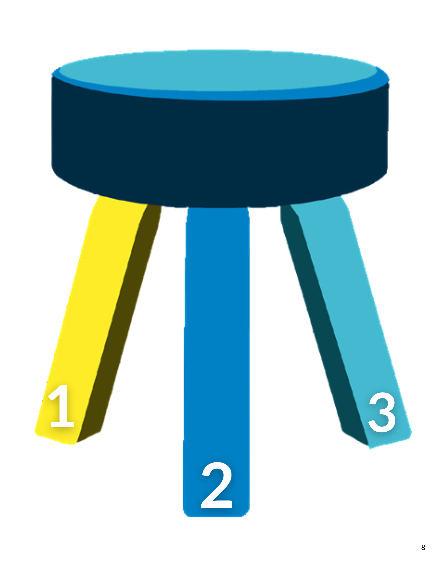 WMTFA’s strategy to build this infrastructure is represented by three legs of a stool. Each leg represents a strategy we use to build narrative power with our partners. All three legs are required for the impact we seek.